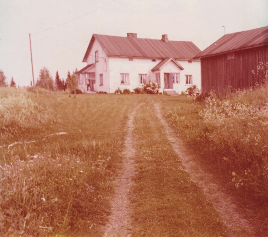 Juppilan talo ja oikealla navetta 1970-luvulla.