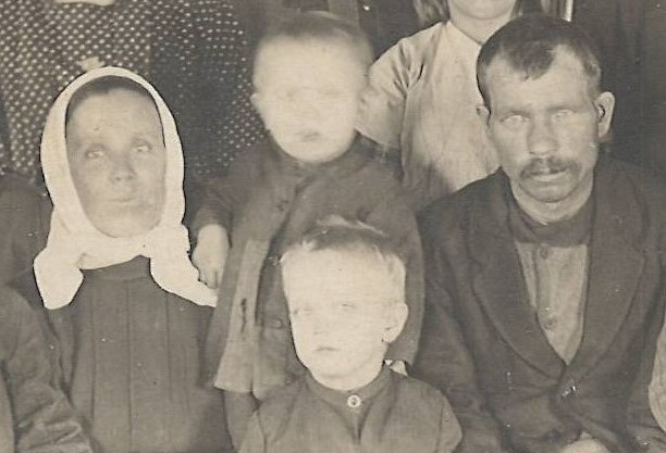 Kuvassa vasemmalla Kolan äiti Anni, jonka sylissä seisoo Kola, joka ei ole malttanut olla paikallaan kuvaushetkellä. Kolan edessä on hänen veljensä Lauri ja kuvassa oikealla on heidän isänsä Mikko.